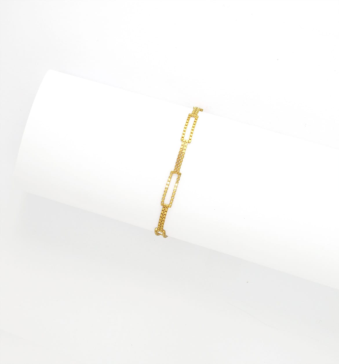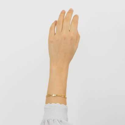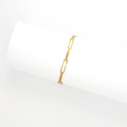 The Faire en Square Bracelet features a clean, geometric design. This bracelet exudes a simple, but classic feel. Made from sterling or gold-plated silver, it consists of strands of Venetian chain and measures 5mm width. Available in 17 or 18 cm, it fastens securely with a snap clasp. Handmade in Rotterdam.