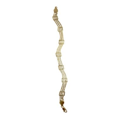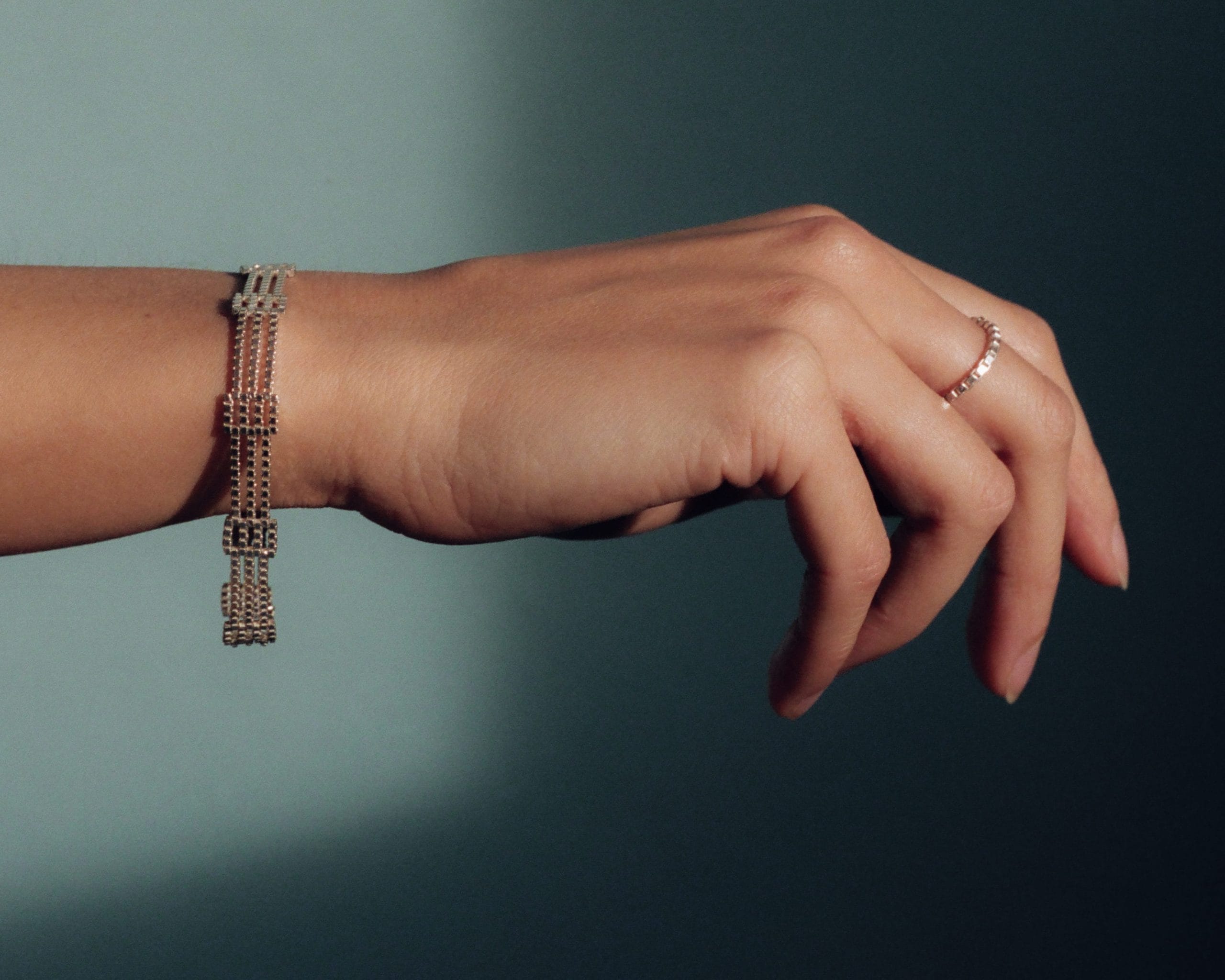 The Odin Bracelet is built from small links arranged in a repeating pattern, creating a subtle motif along the wrist. Its standout feature is the tactile, flowing quality that results from this construction, giving the bracelet a smooth and elegant drape.Made from sterling silver 925/000 or gold-plated sterling silver 925/000, it consists of strands of 1.5 mm Venetian chain woven into an 8.5 mm-wide design. Available in 18 or 19 cm, it fastens securely with a lobster clasp. Handmade in Rotterdam, the Odin Bracelet combines intricate design with effortless wearability.