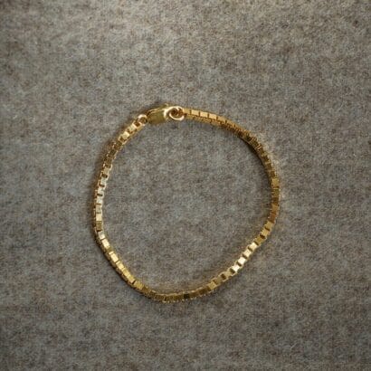 The Venetian Wide Bracelet is a simple, yet bold design, crafted from 2.4 mm width Venetian chain and is available in sterling silver 925/000 or gold-plated sterling silver 925/000. The bracelet comes in sizes 18 or 19 cm and is finished with a lobster clasp.